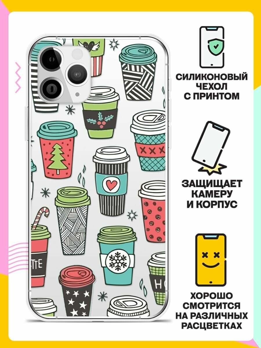 Силиконовый чехол на Apple iPhone 11 Pro Max Узор из стаканчиков / для Эпл Айфон 11 Про Макс информация: