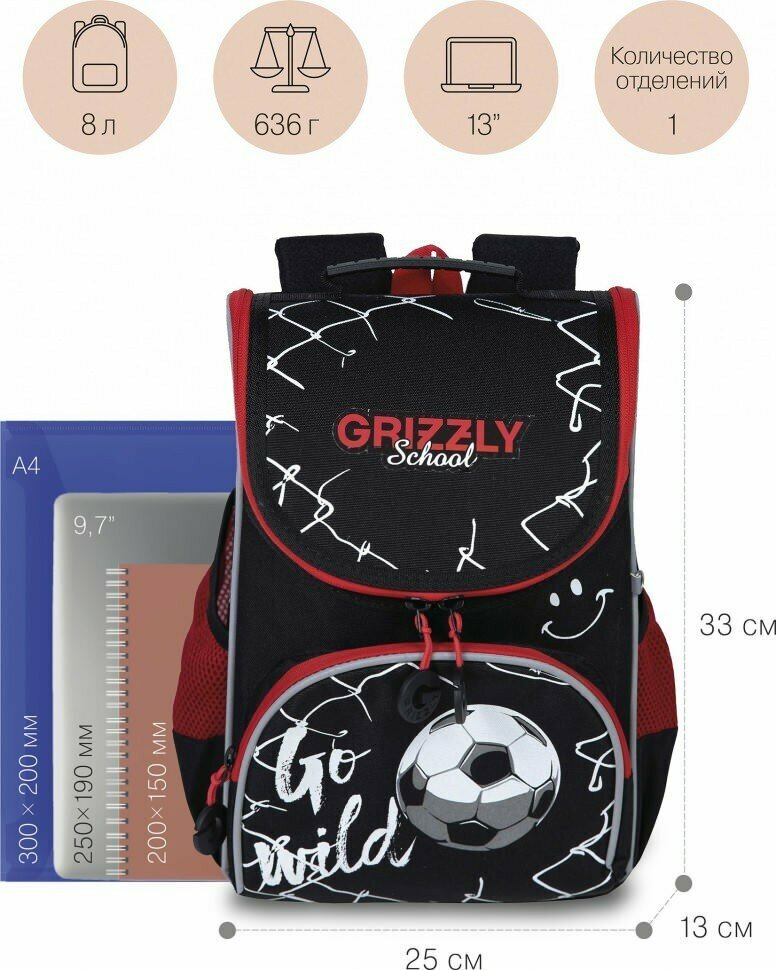 10 цен на Рюкзак Grizzly школьный с мешком RAm-285-1/2 черный - красный