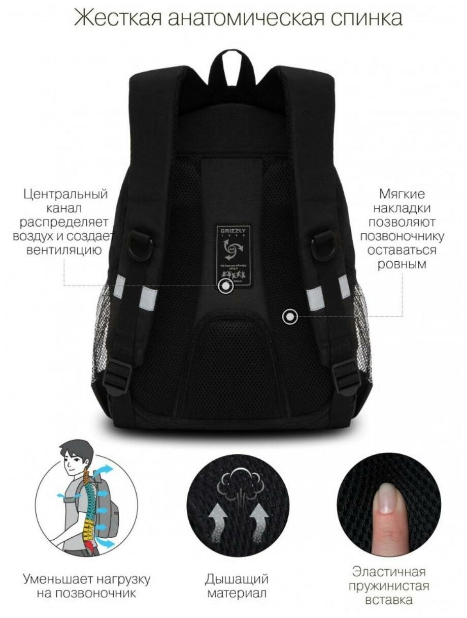 Рюкзак школьный GRIZZLY RB-259-2 черный - цветной информация: