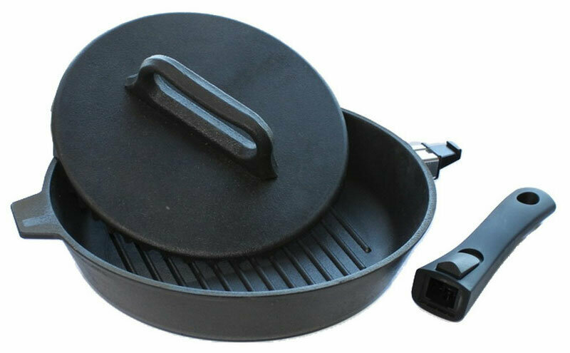 Сковорода-гриль со съемной бакелитовой ручкой с чугунной крышкой гриль 28 см Камская Посуда .