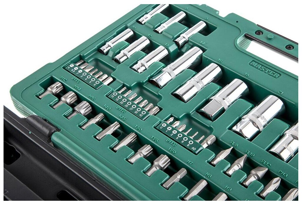 10 цен на Набор инструментов 1/4", 1/2" 6-гр. 94 предмета (+2 доп.) Master 408196-M