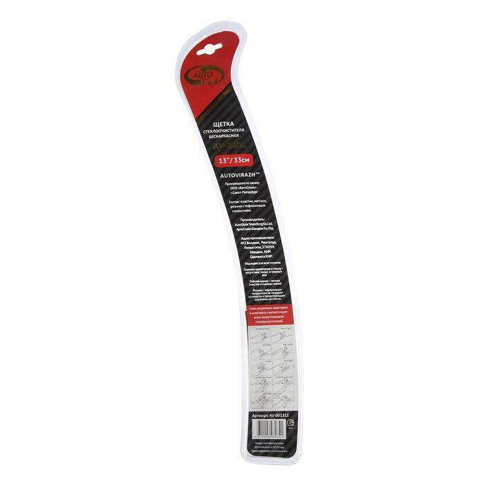 Щетка стеклоочистителя Autovirazh "AV-250", 13"/330 мм, бескаркасная, мультиадаптер информация: