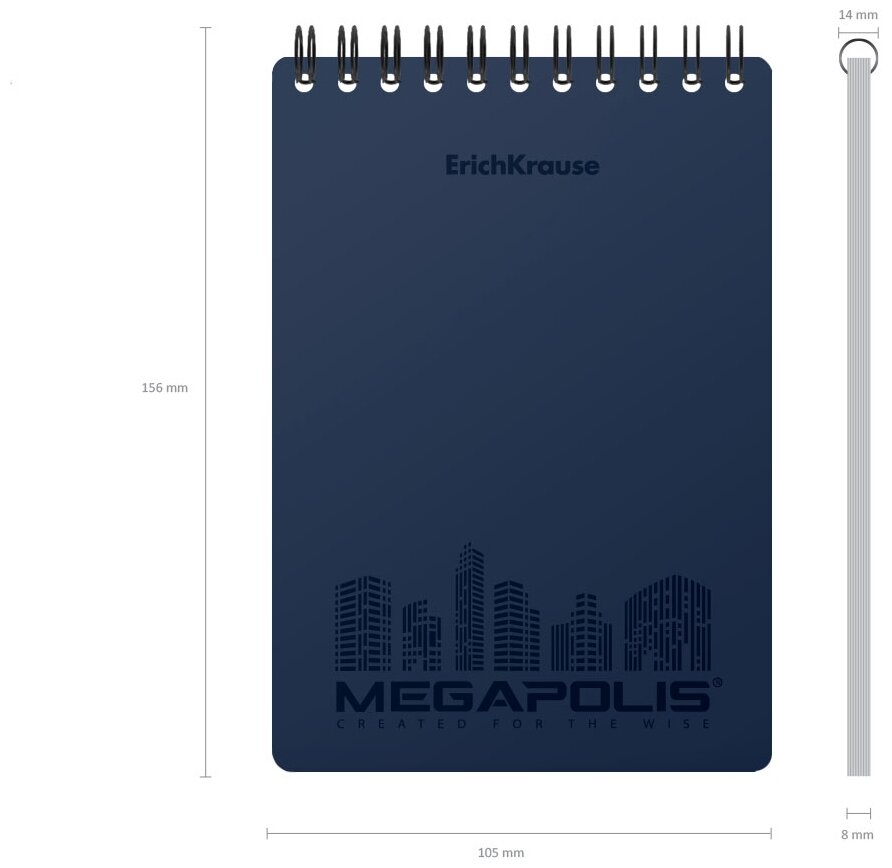Блокнот с пластиковой обложкой на спирали ErichKrause® MEGAPOLIS®, синий, А6, 80 листов, клетка 45948