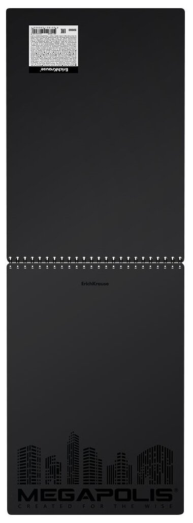 Блокнот с пластиковой обложкой на спирали ErichKrause® MEGAPOLIS®, черный, А4, 80 листов, клетка, перфорация, микроперфорация 50660 информация: