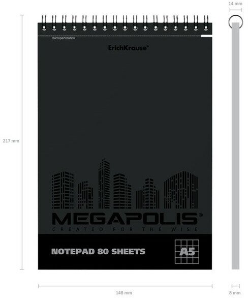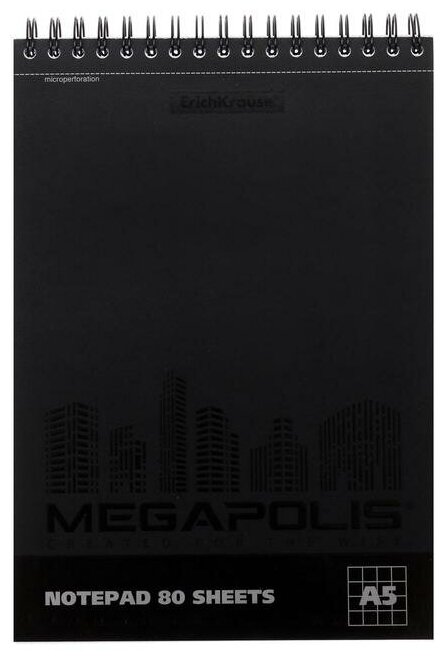 Блокнот А5, 80 листов в клетку, на гребне ErichKrause Megapolis, обложка мелованный картон, твин-лак, перфорация листов информация: