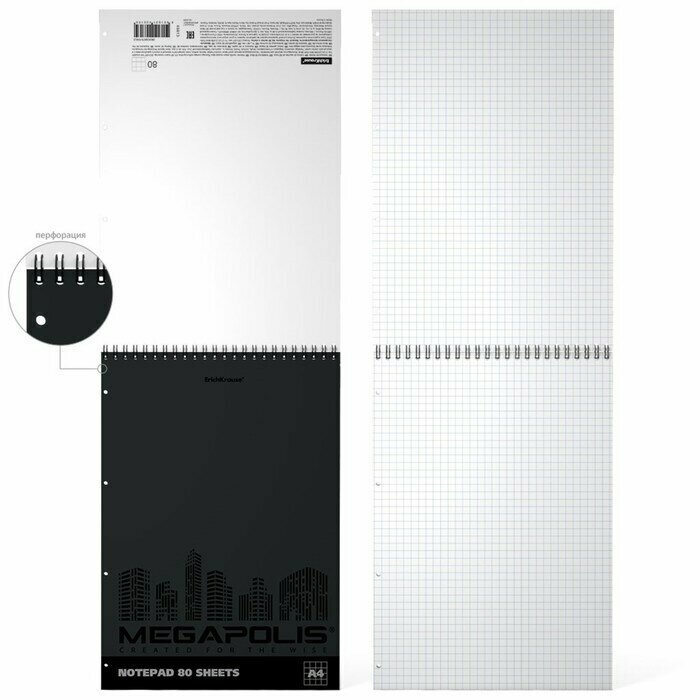 Блокнот А4, 80 листов в клетку, на гребне MEGAPOLIS, 2 шт. информация:
