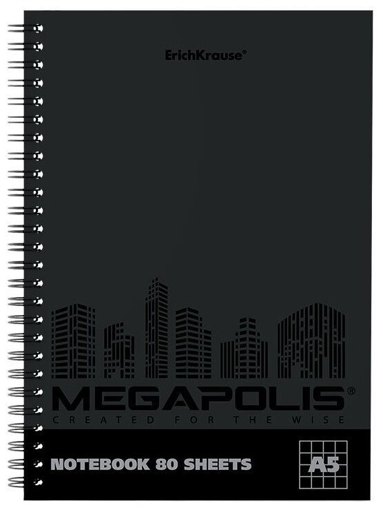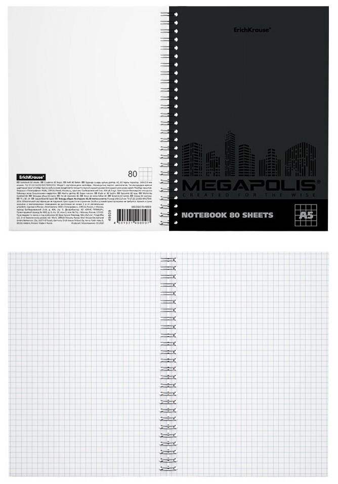Тетрадь А5, 80 листов в клетку на гребне ErichKrause Megapolis, обложка мелованный картон, твин-лак, блок офсет информация: