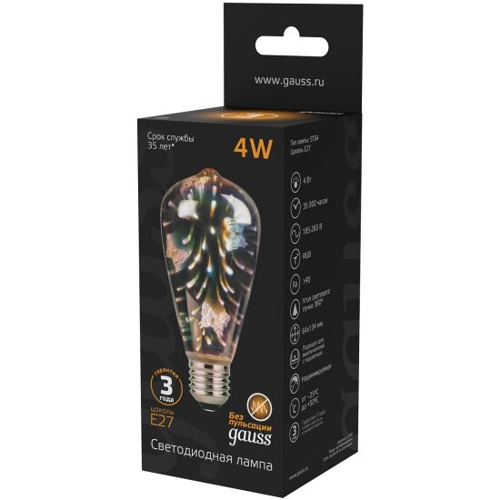 Gauss Светодиодная Лампа Filament ST64 4W Е27 Butterfly-3D LED 1/10/40 147802404
