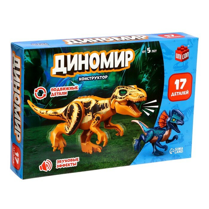 10 цен на UNICON Конструктор «Диномир», тиранозавр и велоцераптор, звуковые эффекты, 17 деталей
