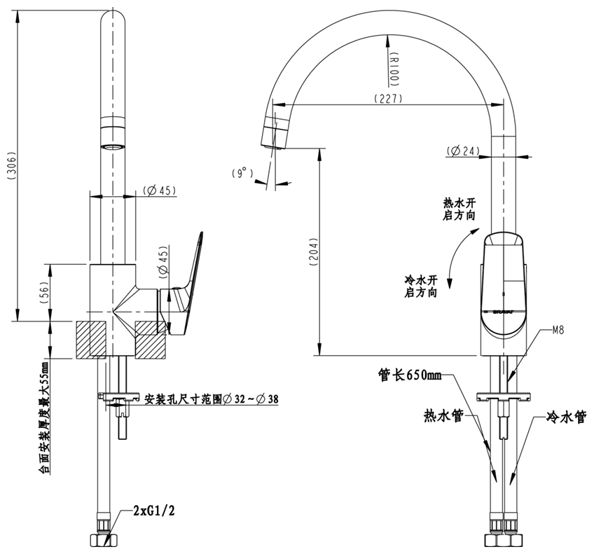Смеситель для кухни с подключением к фильтру с питьевой водой из нержавеющей стали SUS304 Calorie CAL50116-3
