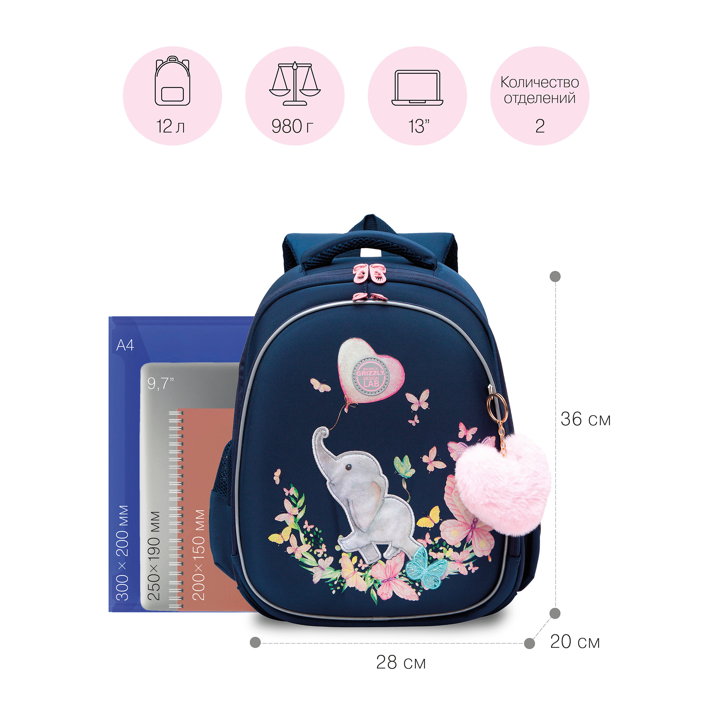 Ранец школьный формованный GRIZZLY с анатомической спинкой на ножках, для мальчика RAz-287-11/1