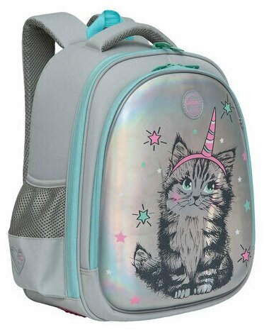 Ранец для девочек Grizzly анатомическая спинка, c брелоком, для девочек, "Magic cat", 36х28х20 см информация:
