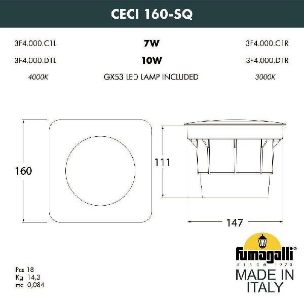 Встраиваемый светильник уличный CECI 3F4.000.000.LXD1L информация: