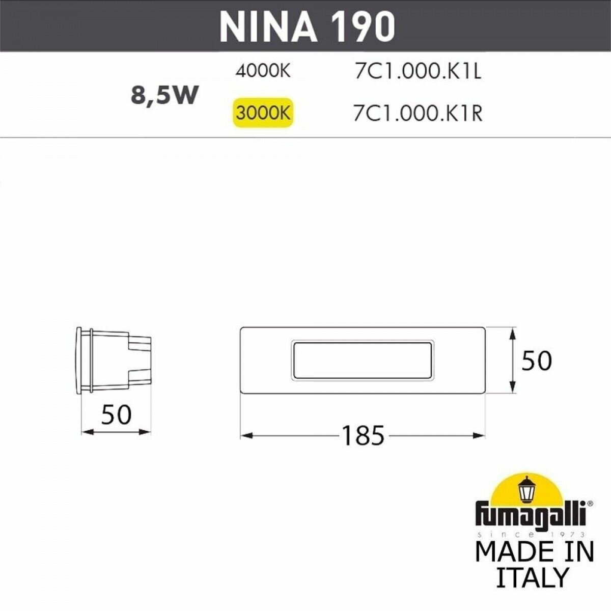 Светильник для подсветки лестниц встраиваемый Fumagalli Nina 190 7C1.000.000.WYK1L, белый и Опал (молочный) информация: