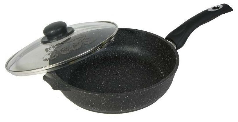 Сковорода 22см с покрытием Гранит black с несъемной ручкой стеклянной крышкой информация: