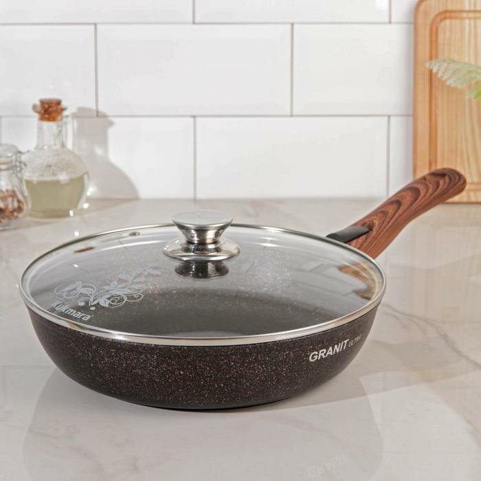 10 цен на Сковорода Granit ultra red, d=26 см, съёмная ручка, стеклянная крышка, покрытие, цвет коричневый. В наборе 1шт.