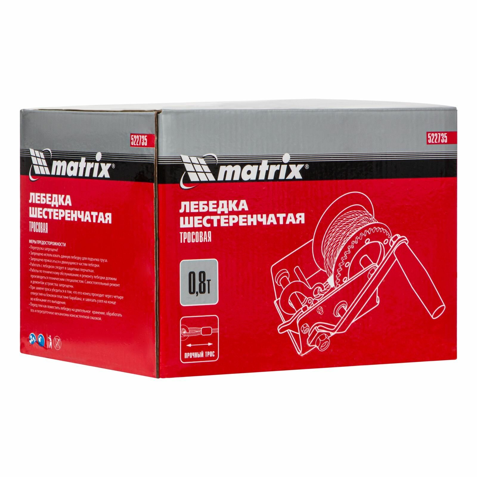 Лебедка шестеренчатая, тяга 0.8 т, тросовая Matrix 522735 информация: