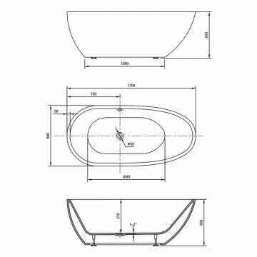 Ванна акриловая Vincea VBT-422-1700, 1700х800х600 цвет белый, слив-перелив в комплекте, хром информация:
