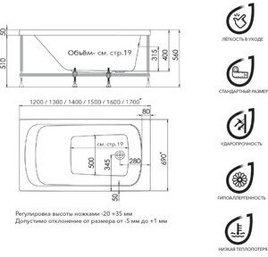 Акриловая ванна 1ACReal Gamma 150х70 на каркасе (Щ0000043243) информация: