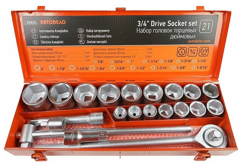 Набор головок торцевых 3/4" (7/8"-2") 21 предмет информация: