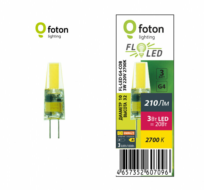 FL-LED G4-COB 3W 220V 2700К G4 210lm 10*32mm FOTON LIGHTING - лампа
