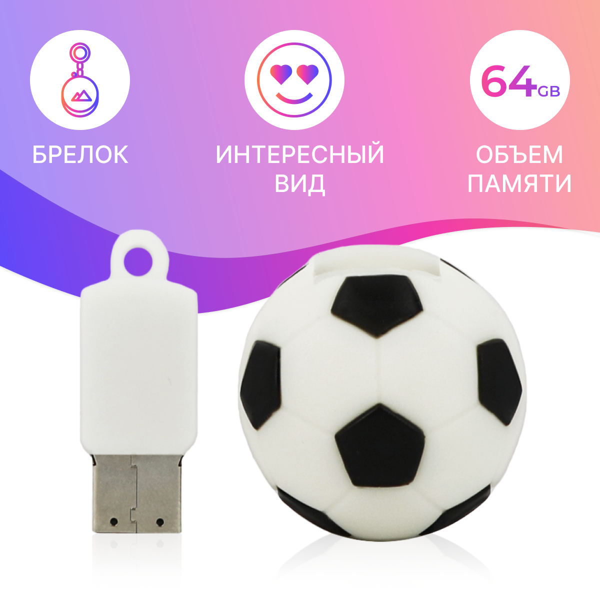 Отзывы на Флешка USB 64GB / Оригинальная подарочная флешка ЮСБ 64 ГБ / Флеш накопитель / USB Flash Drive (Футбольный мяч)