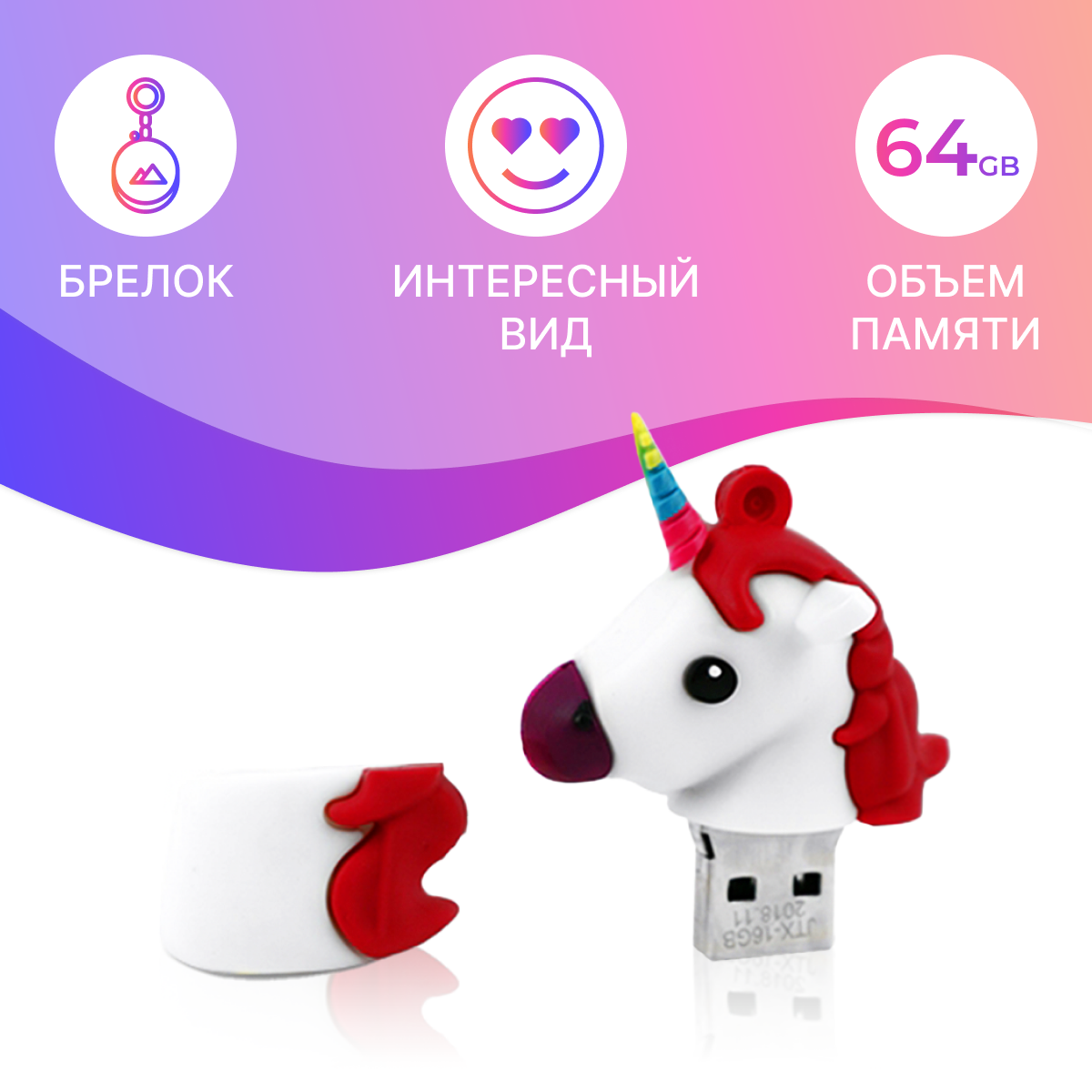 Отзывы на Флешка USB 64GB / Оригинальная подарочная флешка ЮСБ 64 ГБ / Флеш накопитель / USB Flash Drive (Единорог белый)