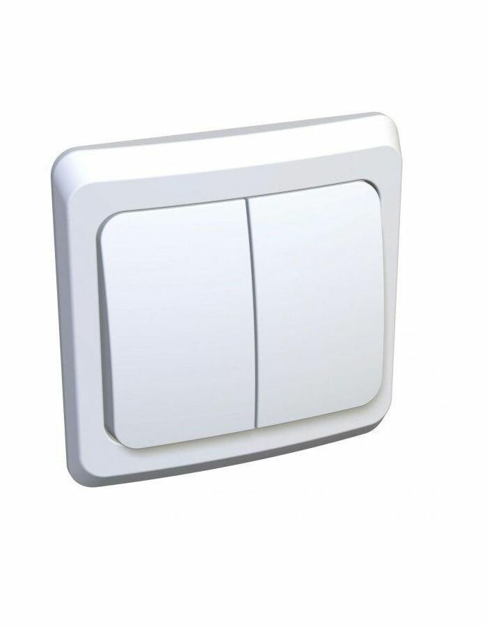 Выключатель двухклавишный Bylectrica Пралеска, брызгозащищенный, открытой установки, 6А, 250В, белый. А5 6-224.
