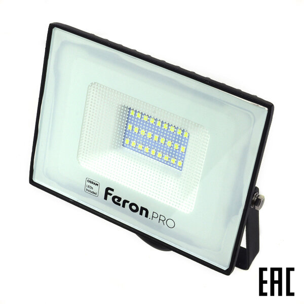 Прожектор светодиодный ДО-30w 6400К 3000Лм IP65 черный Feron.PRO | код 41539 | FERON (1 шт.) 1 439 ₽