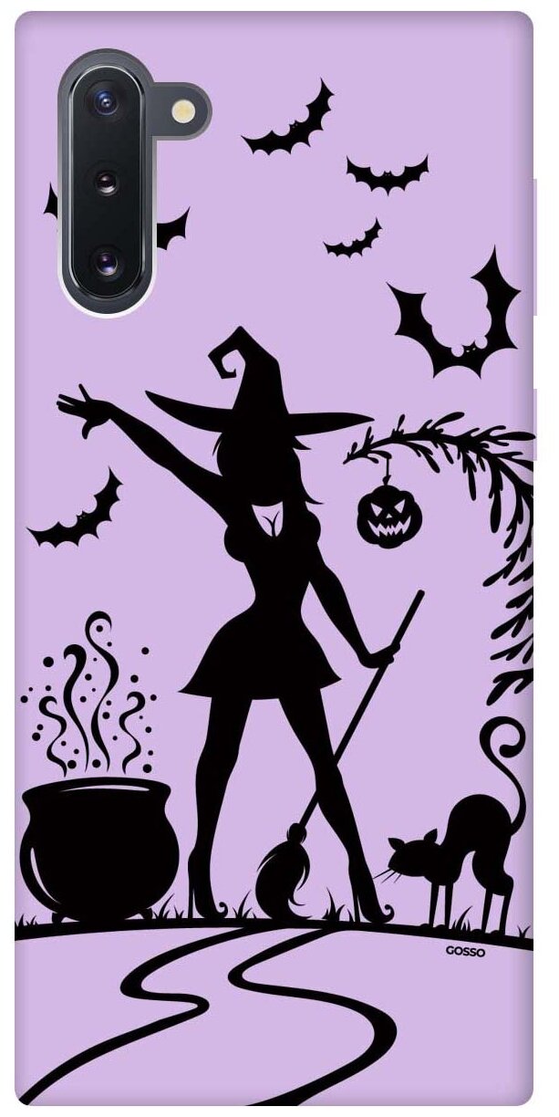 10 цен на Силиконовая чехол-накладка Silky Touch для Samsung Galaxy Note 10 с принтом "Witch and Boiler" сиреневая