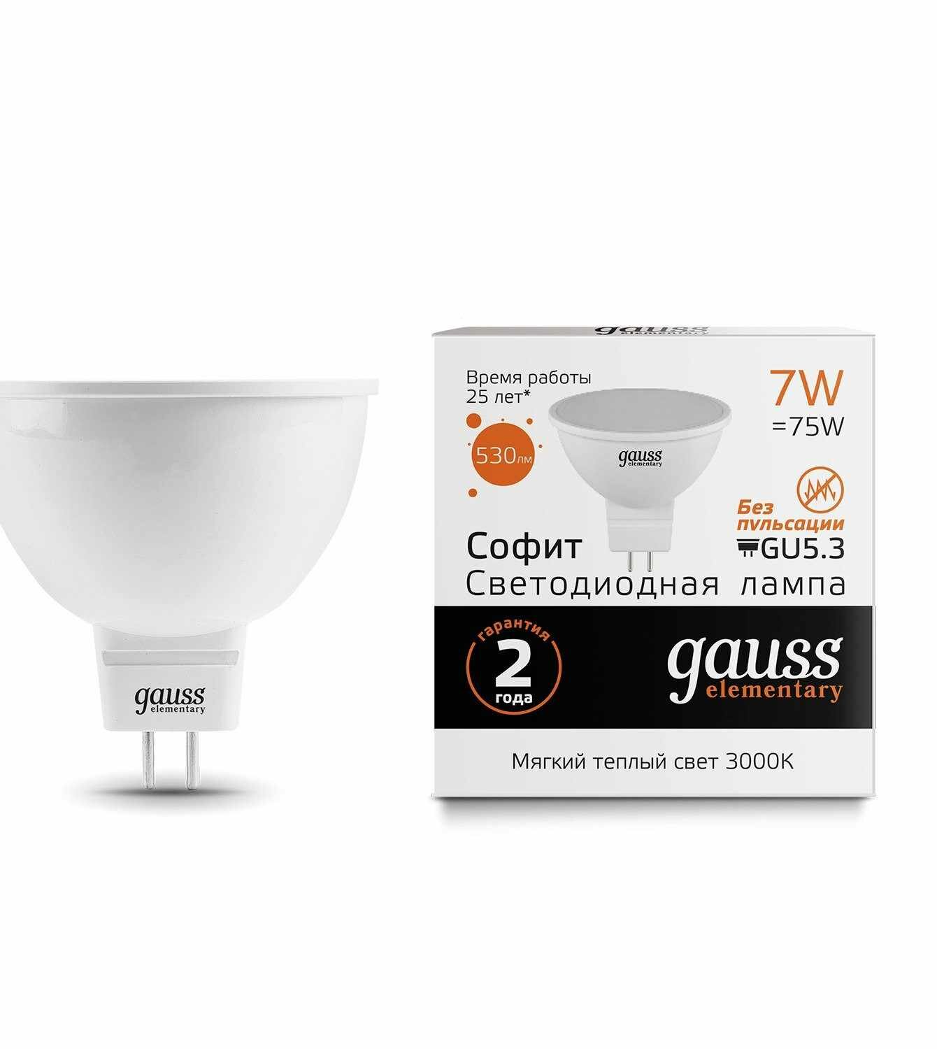 Отзывы на Лампа светодиодная Elementary 7Вт MR16 3000К тепл. бел. GU5.3 530лм GAUSS 13517