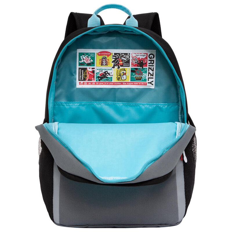Рюкзак школьный GRIZZLY,29х38х17,5, RB-251-5/1 черный-голубой информация: