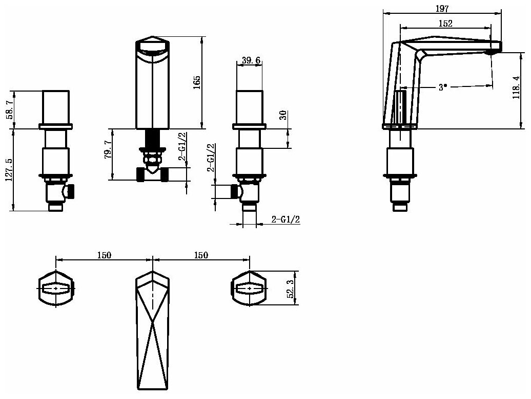 Boheme Смеситель врезной на 3 отв. VENTURO хром, ручка ICE 150-CR-ICE информация:
