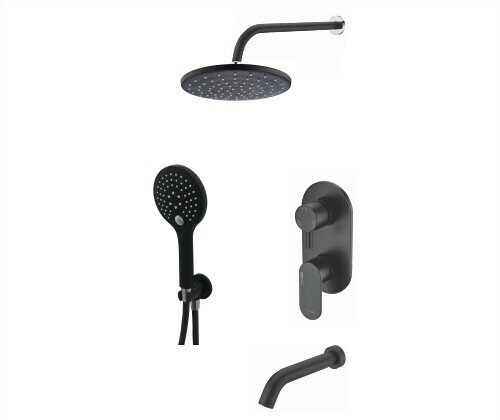 Встраиваемый комплект для ванны с верхней душевой насадкой, лейкой и изливом, черный, WasserKRAFT A177471