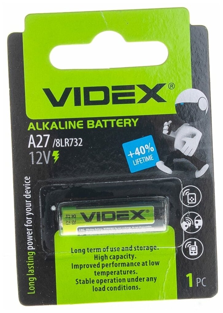 Отзывы на Элемент питания VIDEX, A27/ GP27A/ MN27/ L828/ 27A/ V27A/ A27BP/ G27A/ 8LR732, 1 шт в блистере VID-A27-1BL