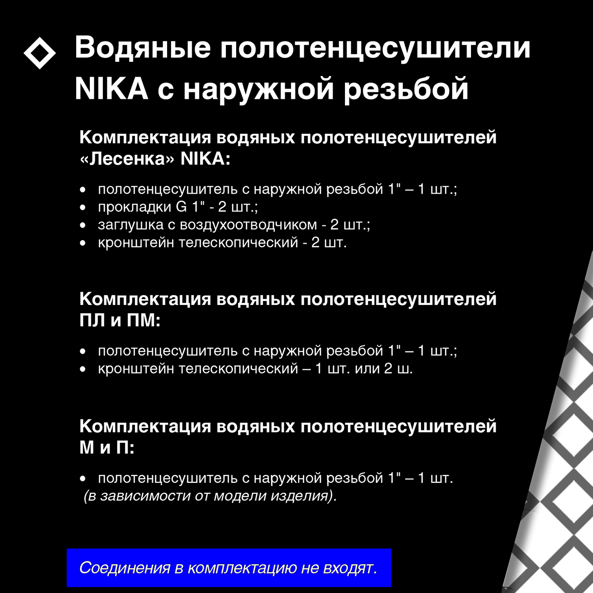 | Направление подключения | верхнее, нижнее, боковое правое, боковое левое, диагональное |