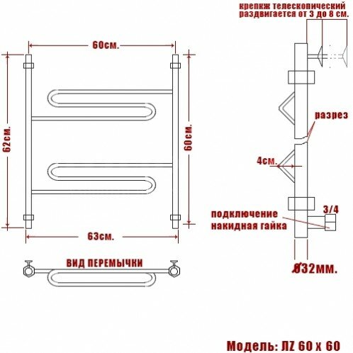 Полотенцесушитель Ника Curve ЛЗ 60/60/63 информация: