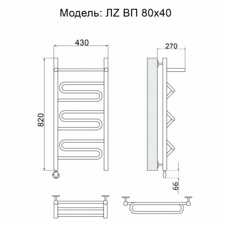 Полотенцесушитель Электрич. Ника CURVE ЛZ ВП 80/40 левый тэн информация: