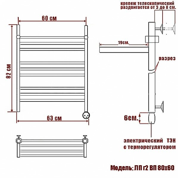 Полотенцесушитель электрический Ника Classic ЛП Г2 ВП 80/60 информация: