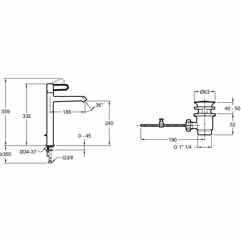 | Особенности | аэратор / донный клапан |