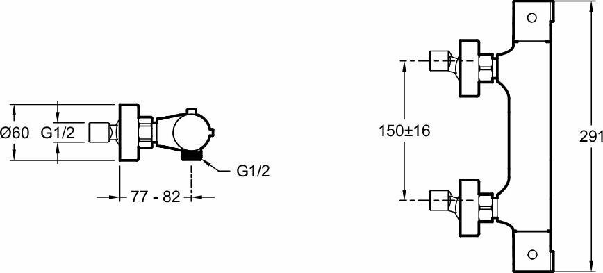 Термостатический смеситель Jacob Delafon E24334-CP Brive Смеситель для душа, термостатический, хром