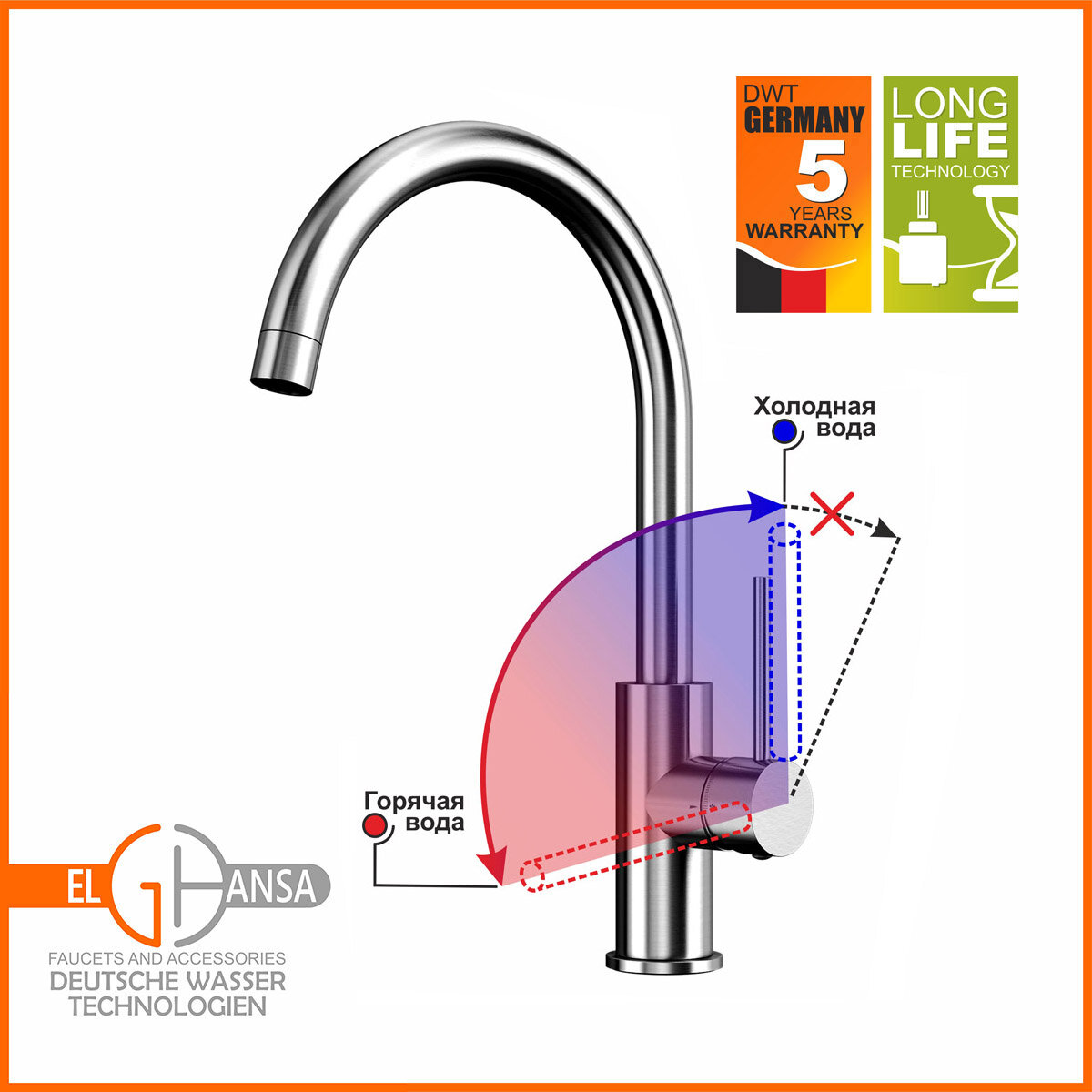 Смеситель для кухонной мойки Elghansa Kitchen 56B1116 информация: