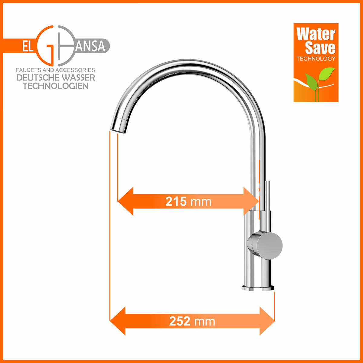 Высокий однорычажный смеситель для кухни (на мойку) с поворотным изливом Elghansa 56B1116 из нержавеющей стали, хром