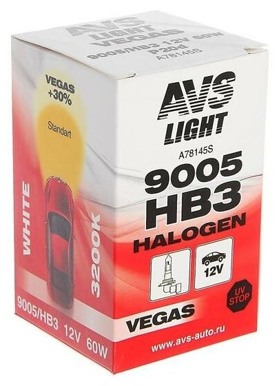 Галогенная лампа AVS Vegas в блистере HB3/9005.12V.60W.1шт. информация: