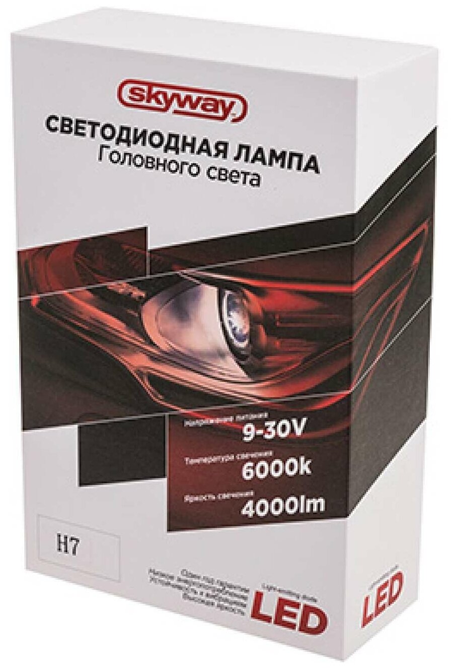 10 цен на Автолампа-LED H7(X7) 12/24V 28W 6000K 4000Lm 1-конт SKYWAY комп.2 шт радиатор+вентилятор охл