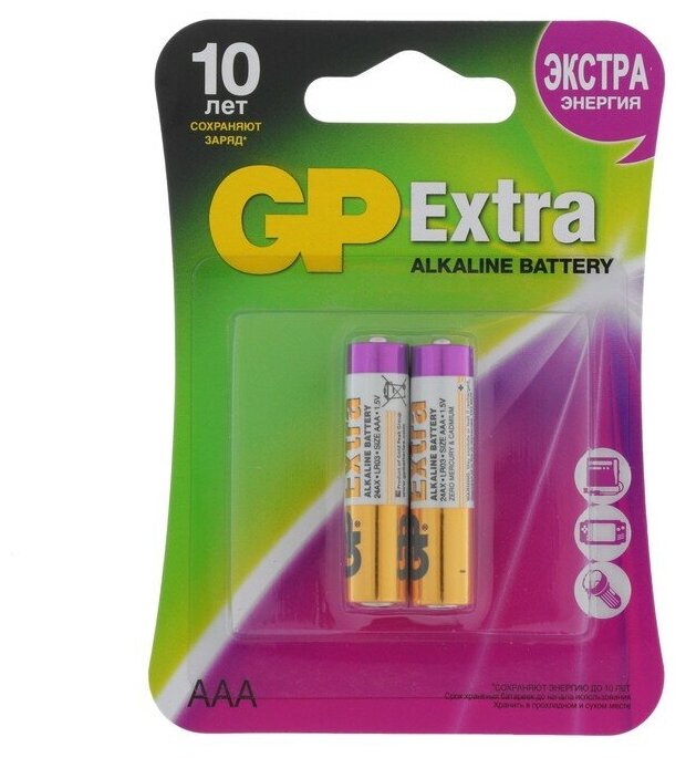 10 цен на Батарея GP Extra Alkaline 24AX LR03 AAA (2шт) блистер