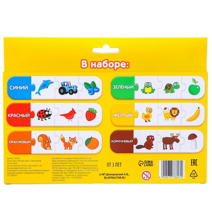 Умные пазлы "Синий трактор: Изучаем цвета" информация: