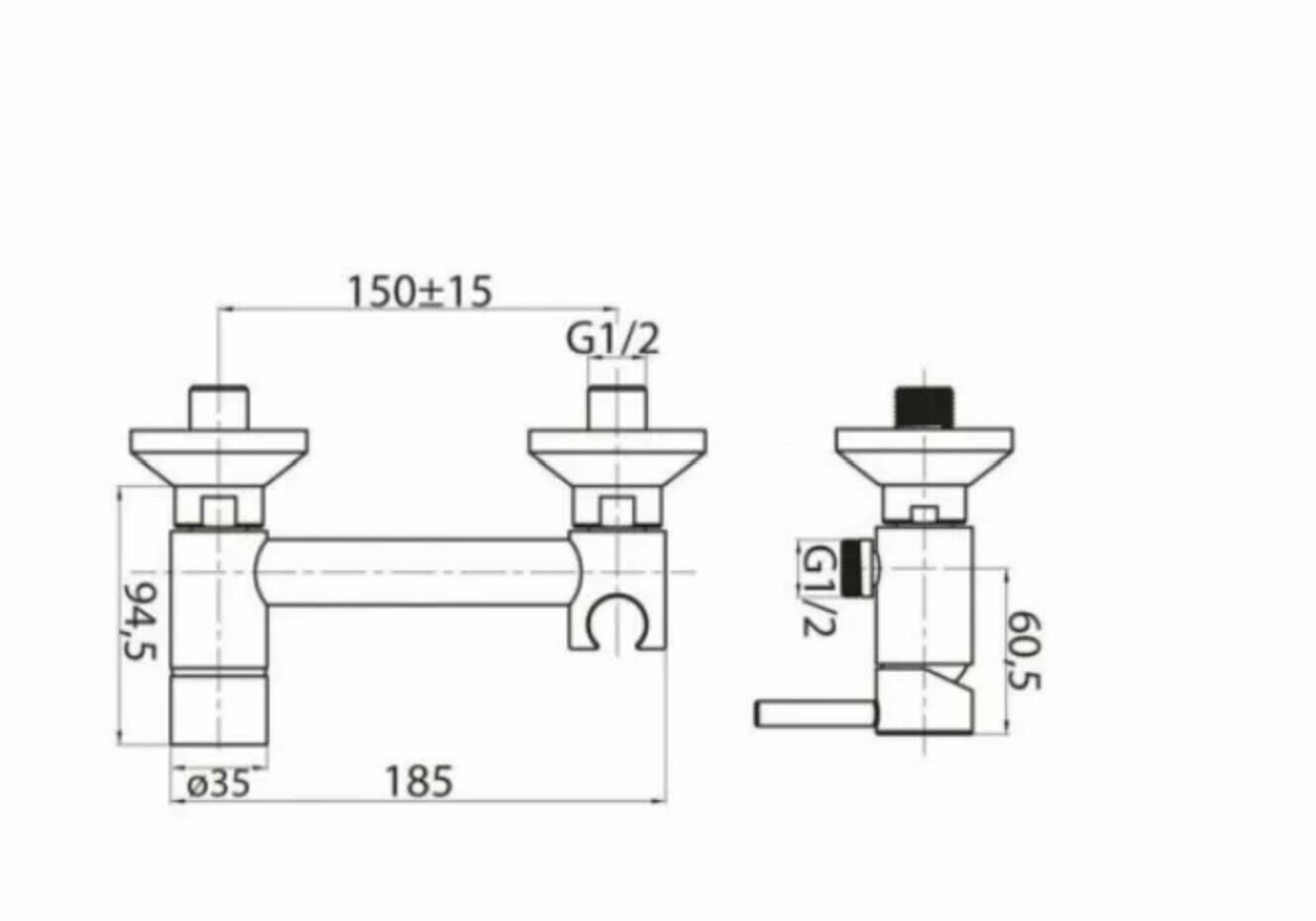 Смеситель на раковину настенный Эверест B46-350 с круглым поворотным изливом, кран-буксы 1/2", хром