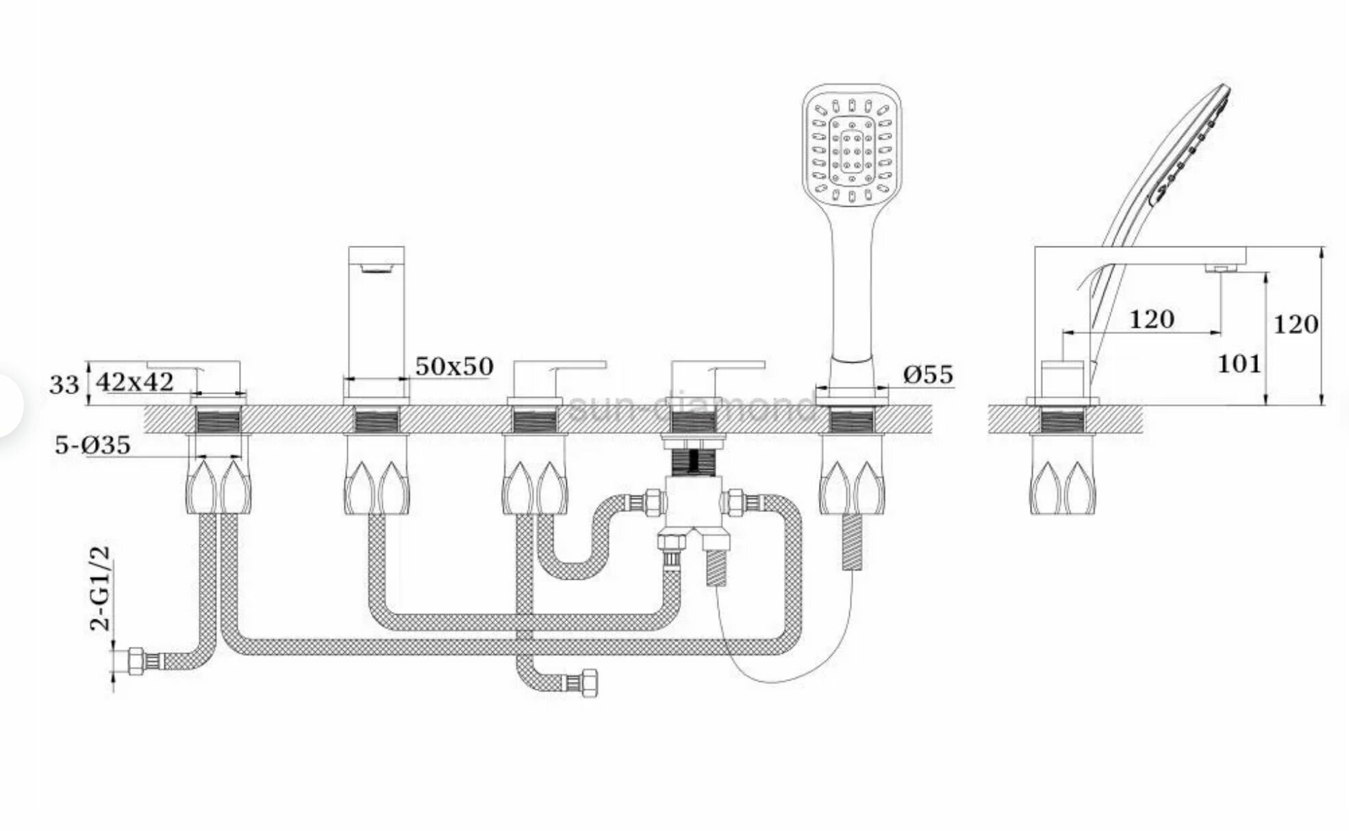 Ganzer Смеситель на борт ванны на 5 отверстий Ganzer GZ12088 хром информация: