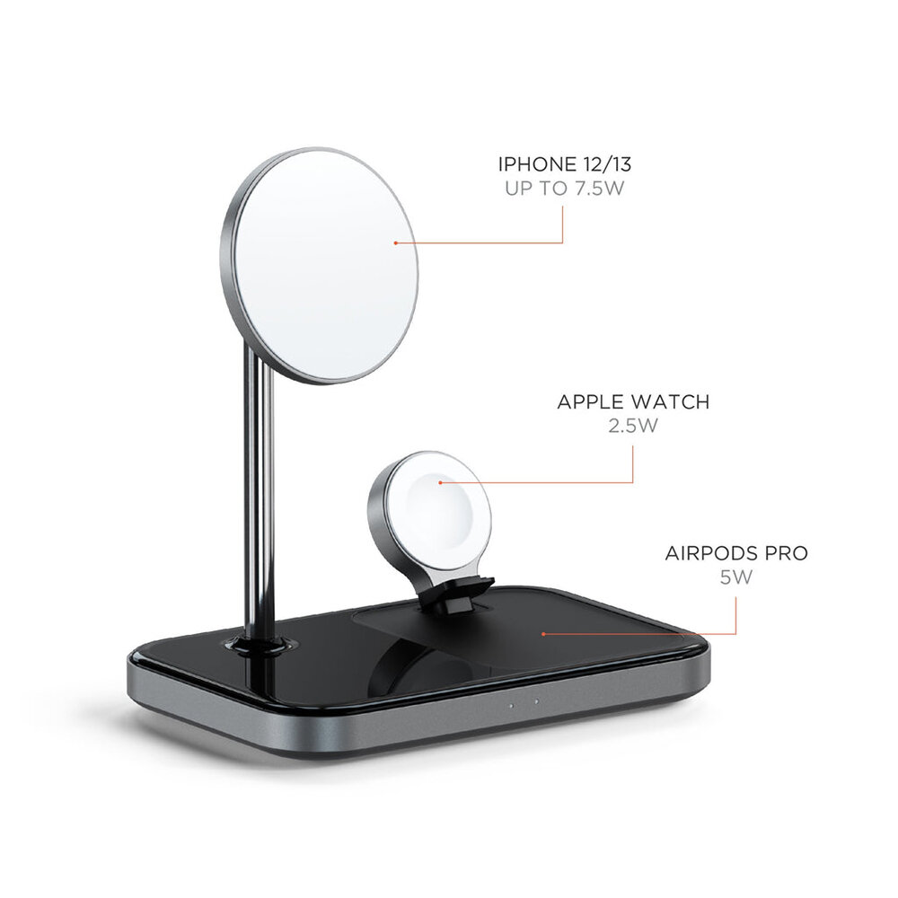 Беспроводное зарядное устройство Satechi 3-in-1 Magnetic Wireless Charging Stand (ST-WMCS3M) информация: